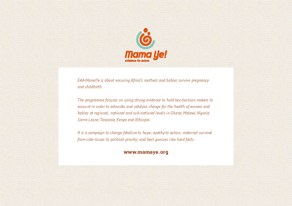 Evidence for Action-Mama Ye. (2017). Mama Ye Infographics on Maternal, Newborn and Child Health in Tanzania. London: Evidence for Action-Mama Ye.