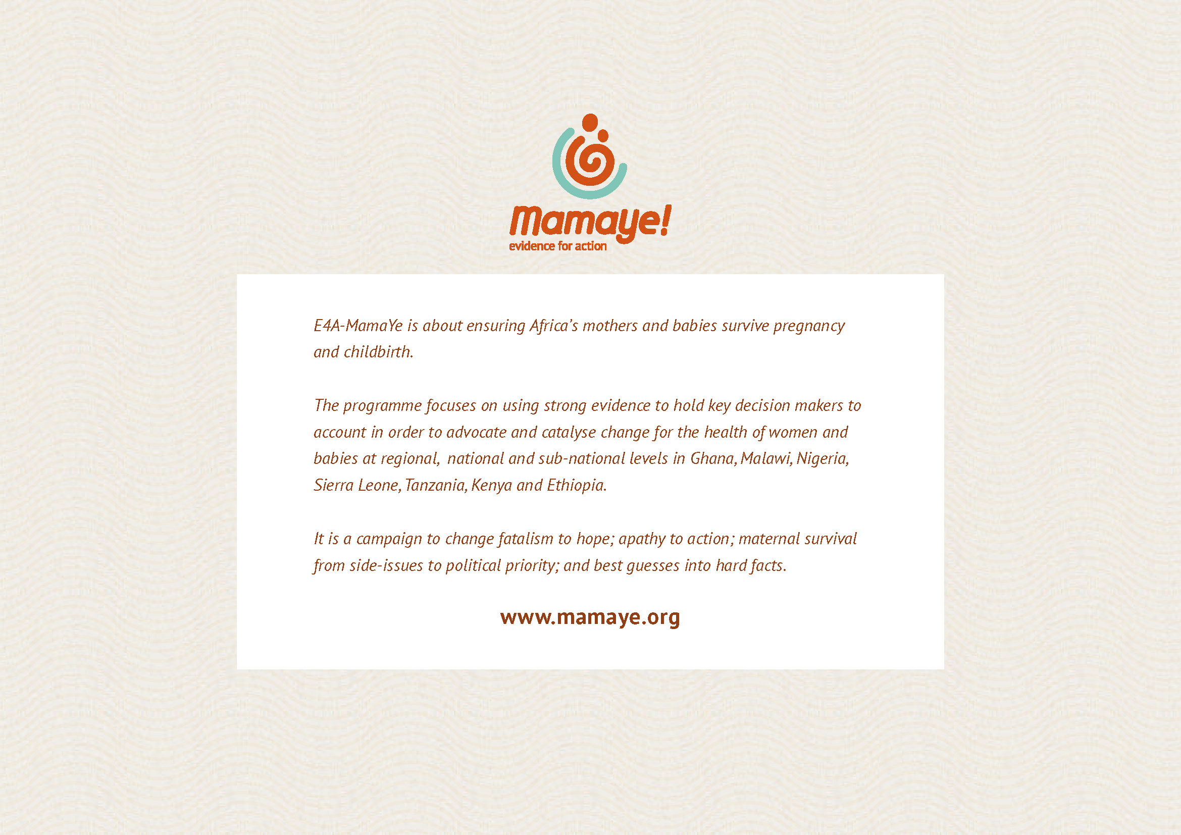 Evidence for Action-MamaYe. (2017). MamaYe Infographics on Maternal, Newborn and Child Health in Ghana. London: Evidence for Action-MamaYe.