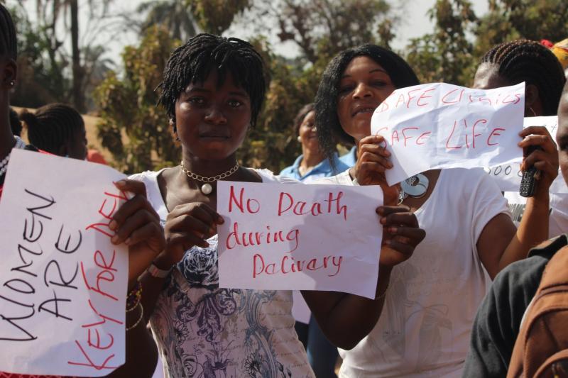 The group raised awareness on Safe Clinics using placards during the district’s celebration of International Women’s Day where a procession was done from the Paramount Chief Court Barry to the District Council Hall.