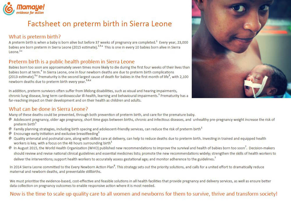Evidence for Action. (2015). MamaYe Factsheet on Preterm Birth in Sierra Leone. London: Evidence for Action.